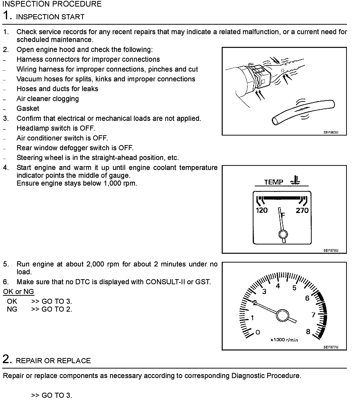 2. On air conditioner equipped models, checks should be carried out while the air conditioner is OFF.