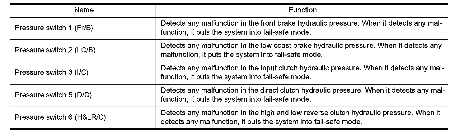 FUNCTION OF PRESSURE SWITCH