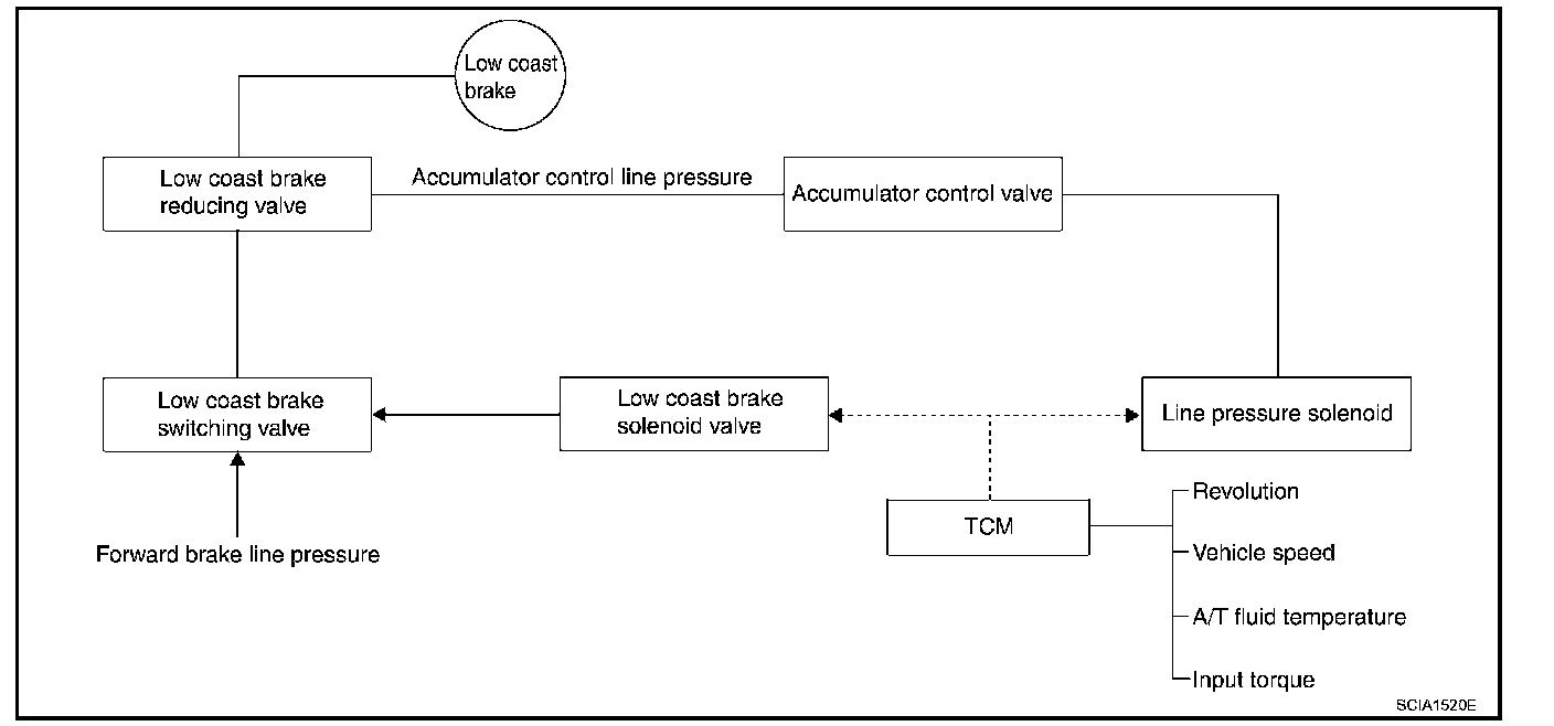 ^ The operation of the low coast brake solenoid switches the low coast brake switching valve and controls the coupling and releasing of the low coast brake. The low coast brake reducing valve controls the low coast brake coupling force.