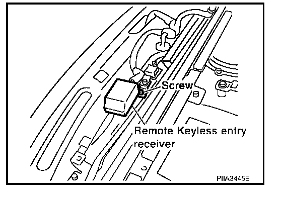 2. Disconnect the remote keyless entry receiver connector, mounting screw and remove the remote keyless entry receiver.