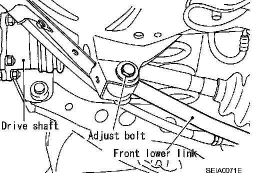 If outside the standard value, adjust with adjusting bolt in front lower link.