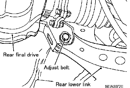 7. If outside the standard value, adjust with adjusting bolt in rear lower link.