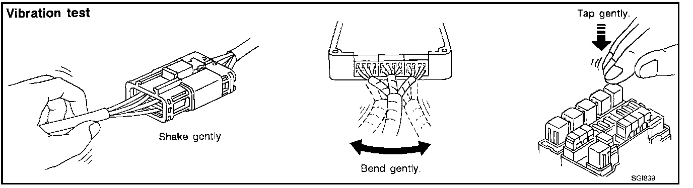Determine which connectors and wiring harness would affect the electrical system you are inspecting. Gently shake each connector and harness while monitoring the system for the incident you are trying to duplicate. This test may indicate a loose or poor electrical connection.