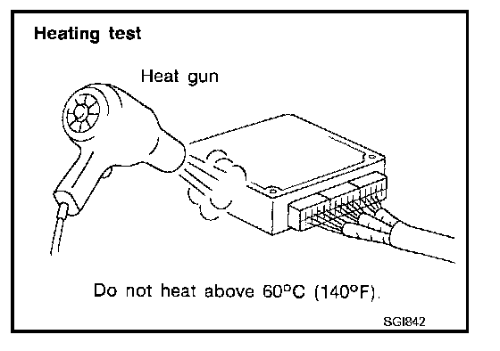 To determine if an electrical component is heat sensitive, heat the component with a heat gun or equivalent. Do not heat components above 60 °C (140 °F). If incident occurs while heating the unit, either replace or properly insulate the component.