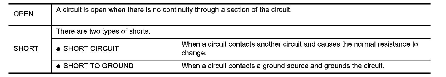 The continuity check is used to find an open in the circuit. The digital multimeter (DMM) set on the resistance function will indicate an open circuit as over limit (no beep tone or no ohms symbol). Make sure to always start with the DMM at the highest resistance level.
