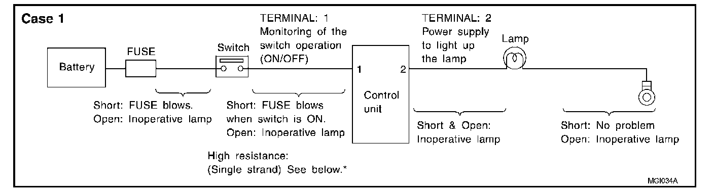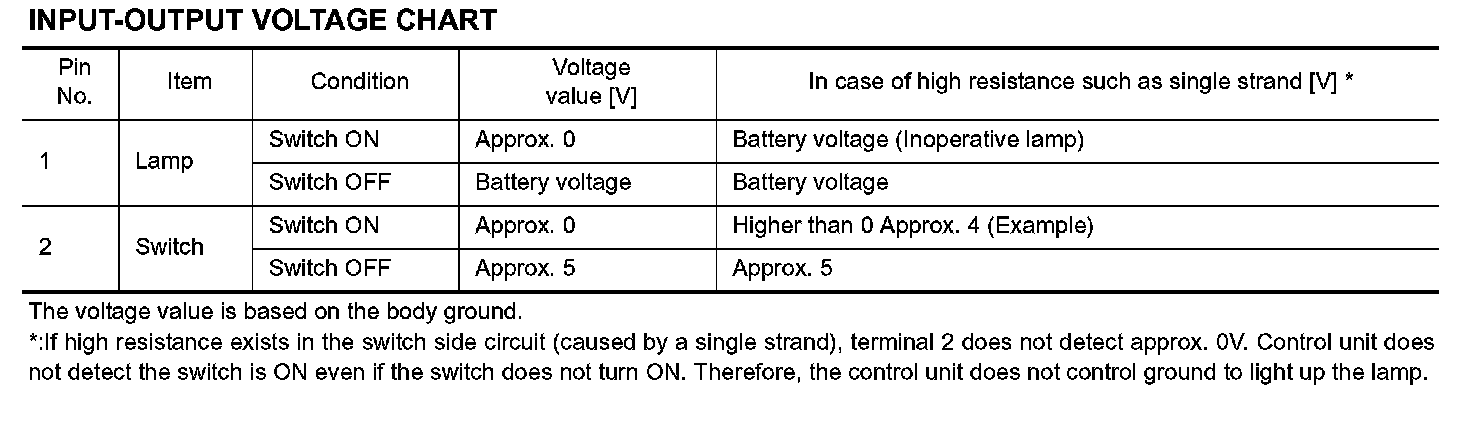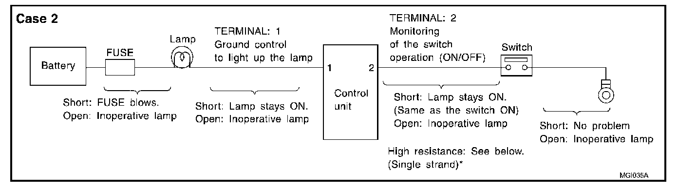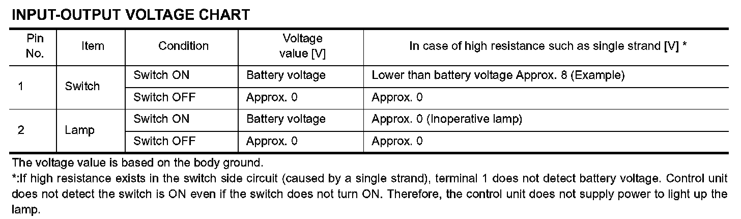 - When using a DMM, be careful not to let test probes get close to each other to prevent the power transistor in the control unit from damaging battery voltage because of short circuiting.