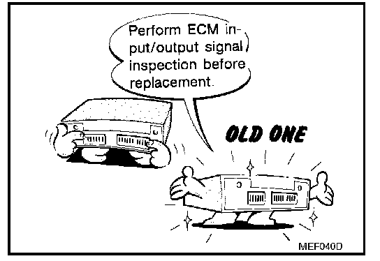 - Before replacing ECM, perform ECM Terminals and Reference Value inspection and make sure ECM functions properly. Refer to EC-97, "ECM Terminals and Reference Value". Pinout Values and Diagnostic Parameters