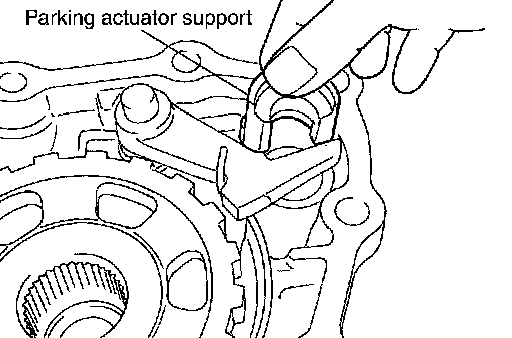 ^ If the contact surface on parking actuator support, parking pawl, etc. has excessive wear, abrasion, bend, or any other damage, replace the components.