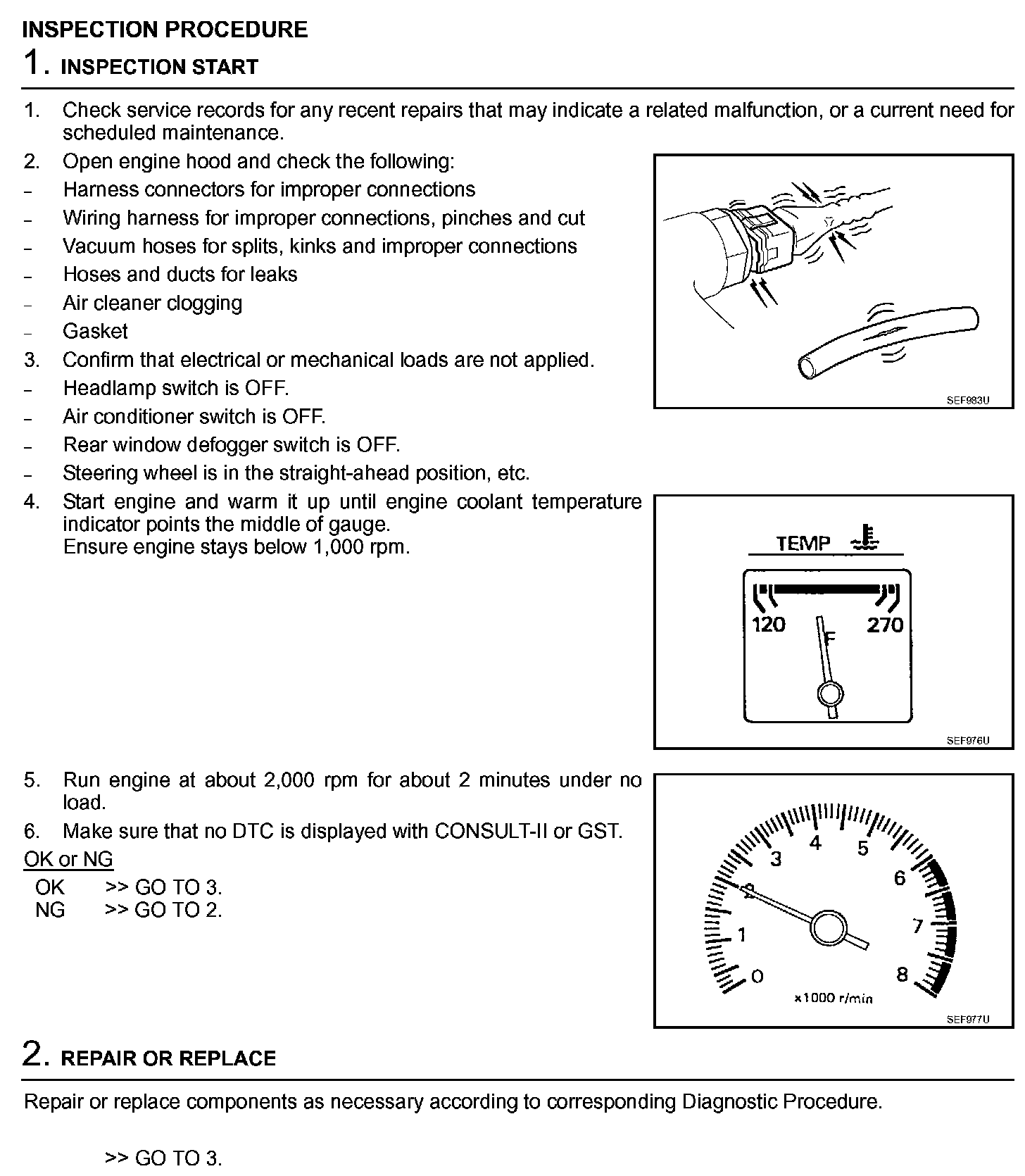 2. On air conditioner equipped models, checks should be carried out while the air conditioner is OFF.