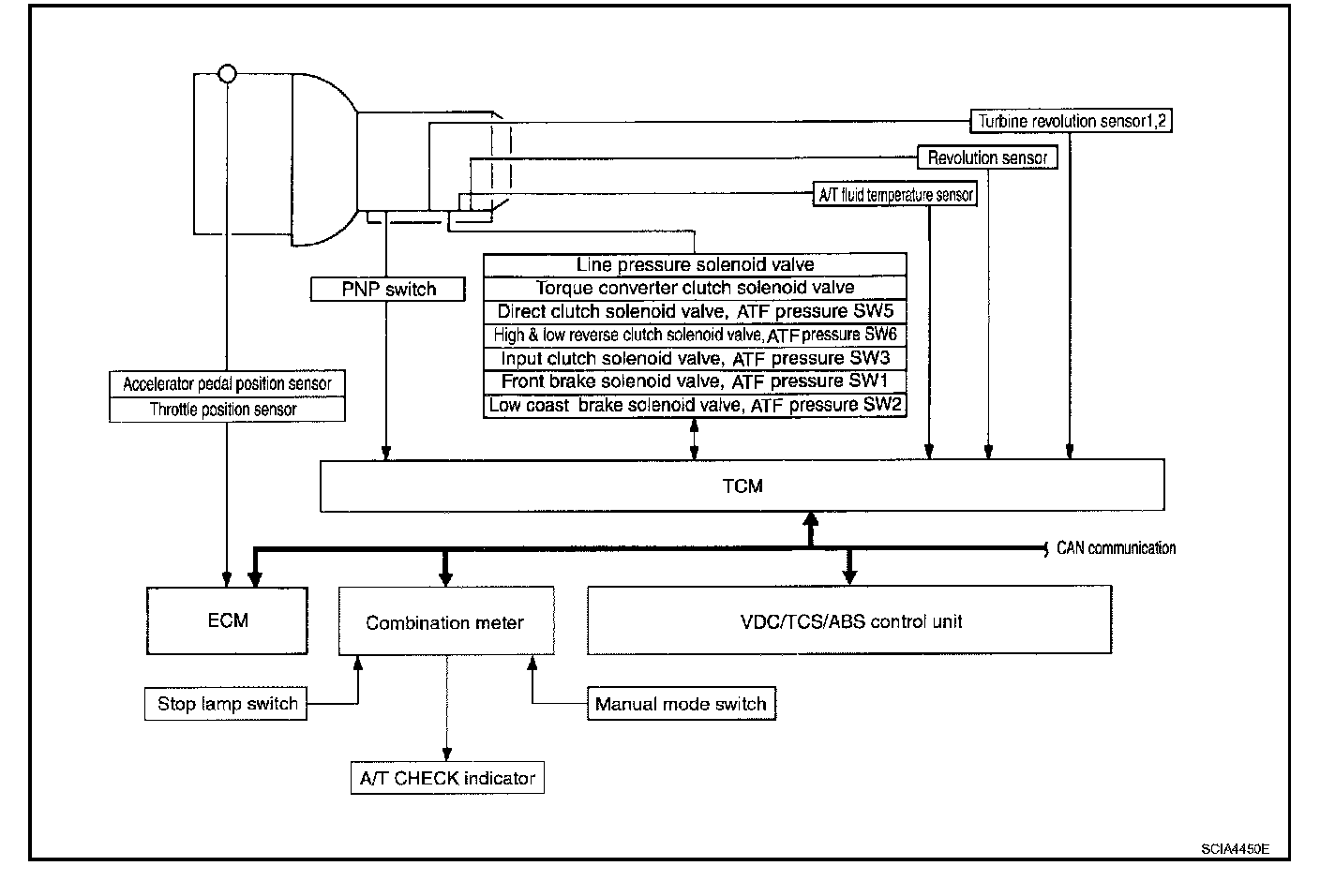 ^ Determine required line pressure, shifting point, lock-up operation, and engine brake operation.