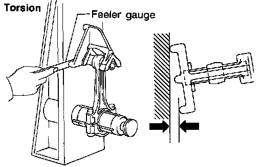 CONNECTING ROD SIDE CLEARANCE^ Measure the side clearance between connecting rod and crankshaft arm with feeler gauge.