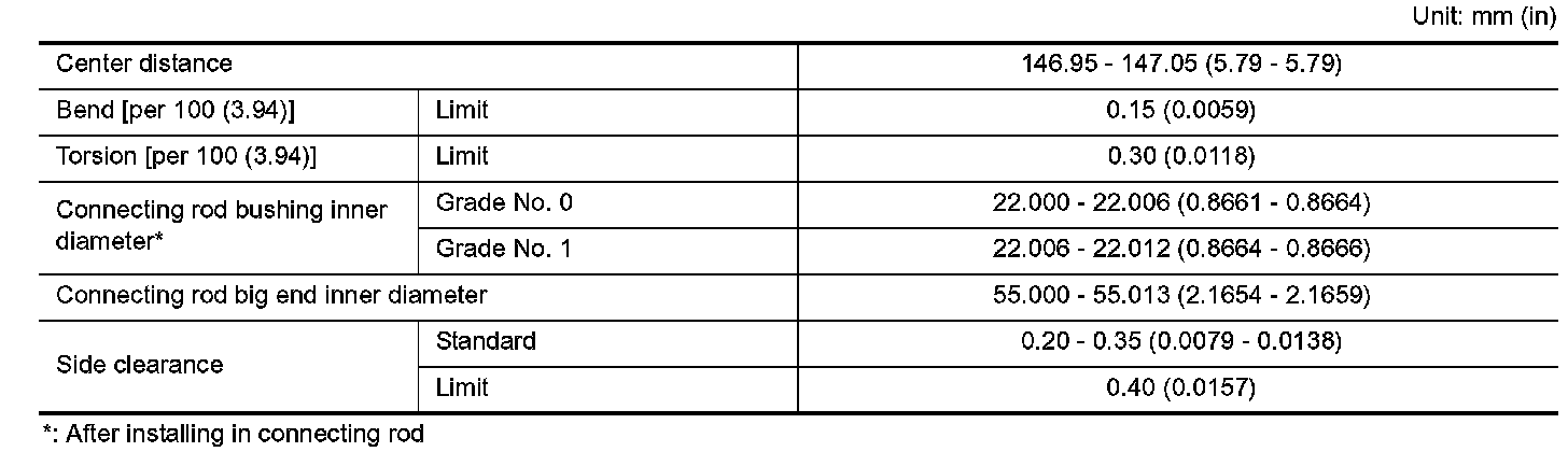 ^ If the measured value exceeds the limit, replace connecting rod, and measure again. If it still exceeds the repair limit, replace crankshaft also.