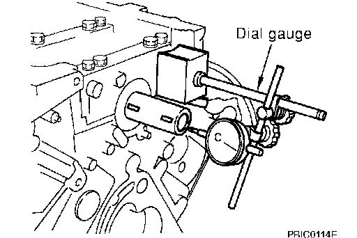 CRANKSHAFT END PLAY^ Using a dial gauge, measure the clearance between the thrust bearings and the crankshaft arm when crankshaft is moved fully forward or backward.