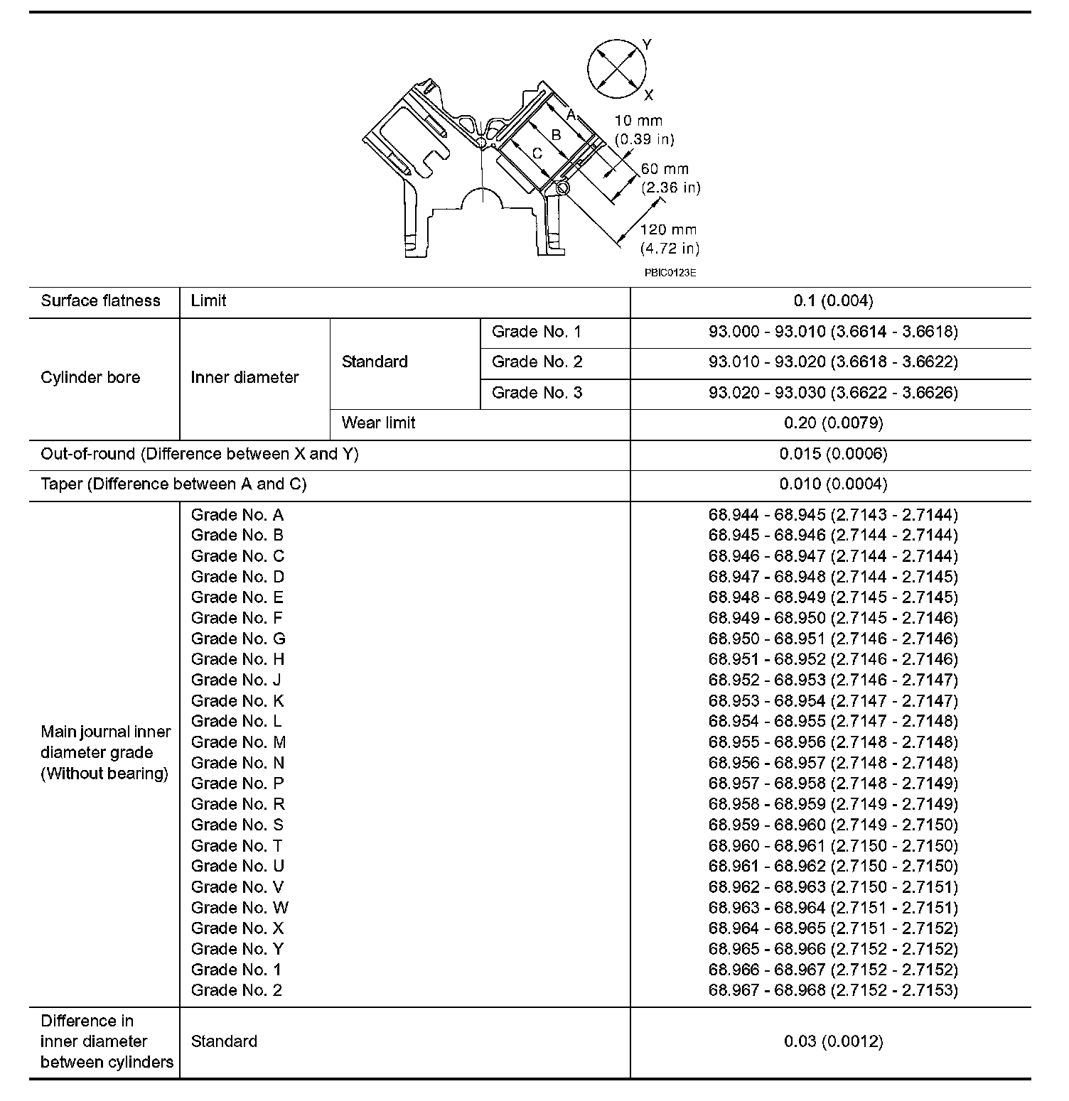 Standard: 92.980 - 93.010 mm (3.6606 - 3.6618 inch)