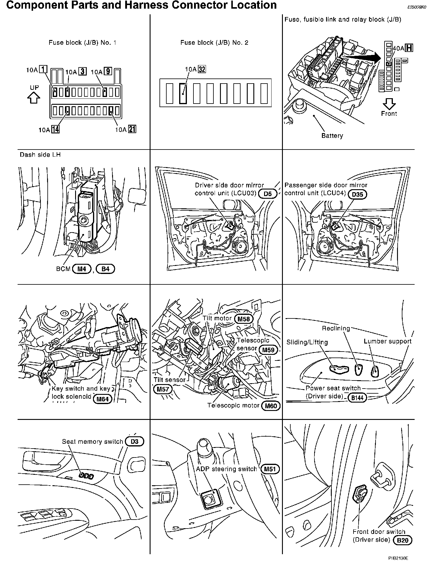 Component Parts And Harness Connector Location: