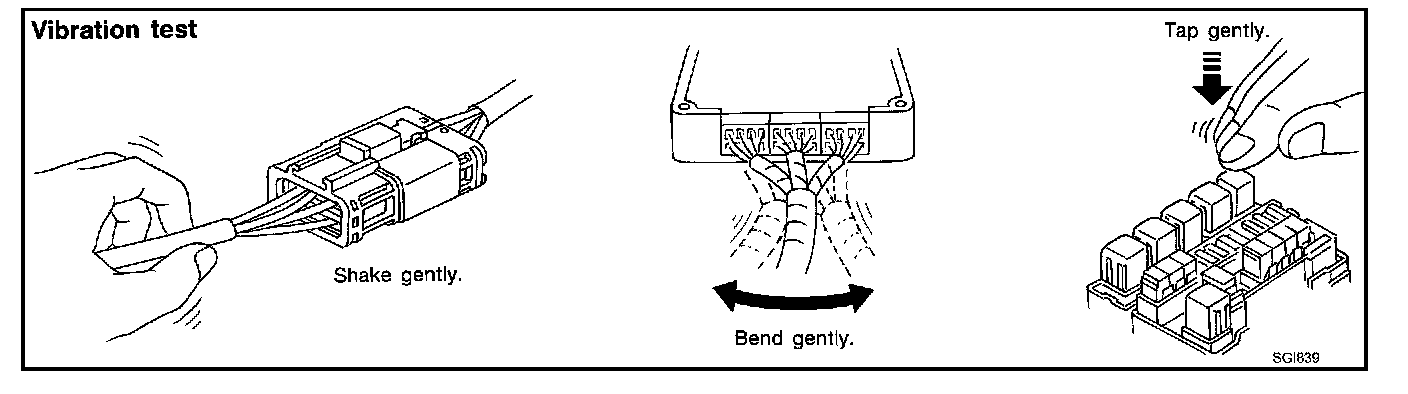 Determine which connectors and wiring harness would affect the electrical system you are inspecting. Gently shake each connector and harness while monitoring the system for the incident you are trying to duplicate. This test may indicate a loose or poor electrical connection.