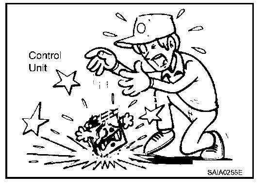 - When using a DMM, be careful not to let test probes get close to each other to prevent the power transistor in the control unit from damaging battery voltage because of short circuiting.