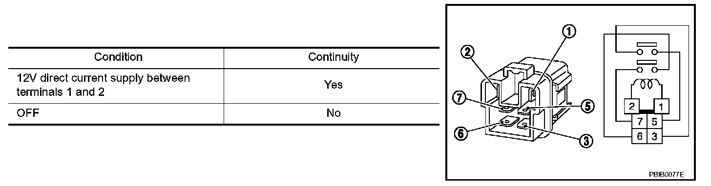 Check continuity between relay terminals 3 and 5, 6 and 7.