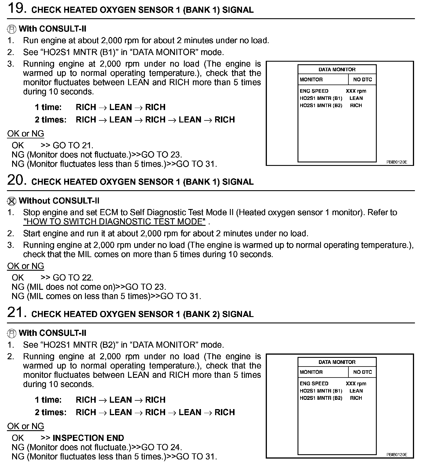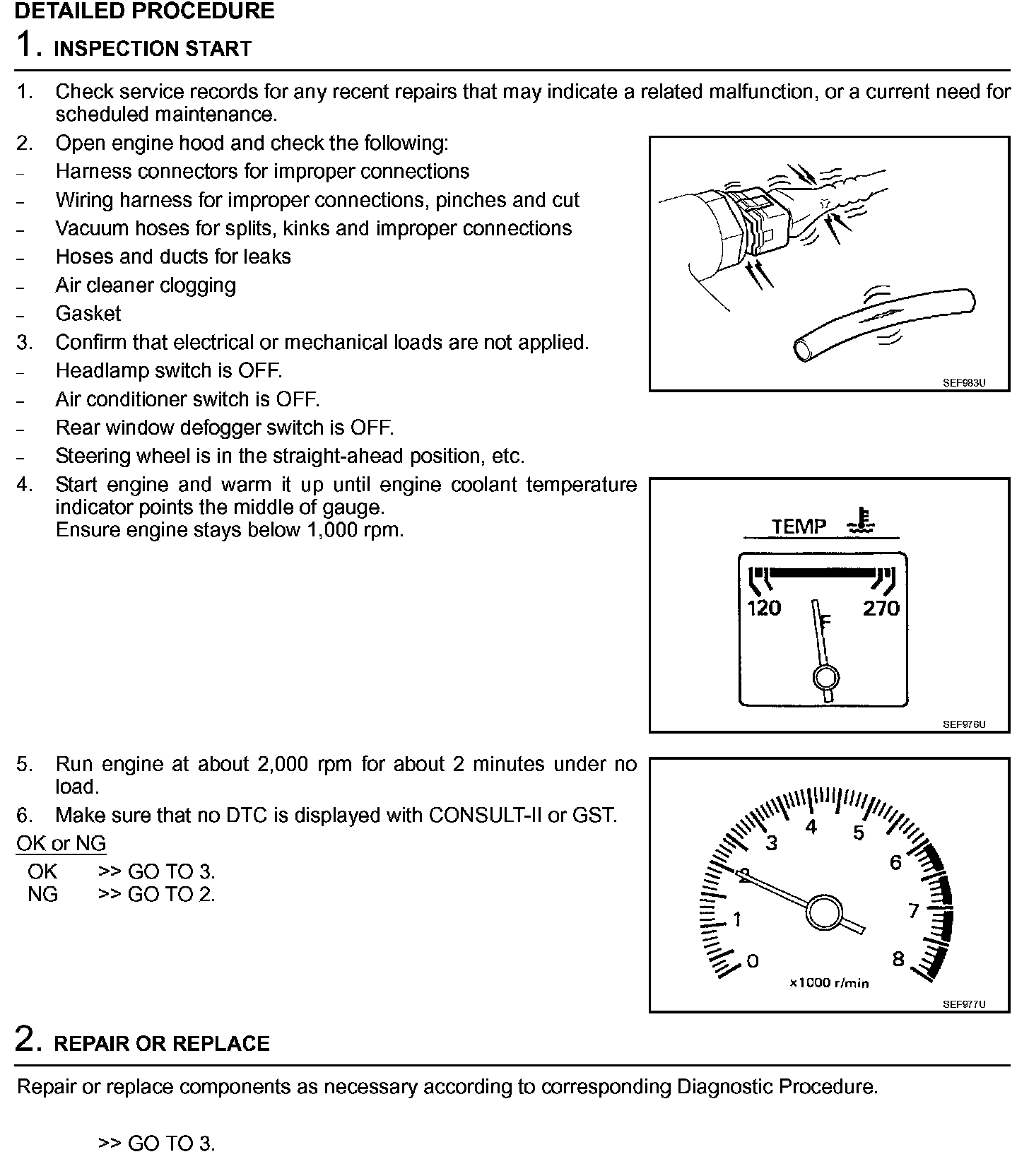 2. On air conditioner equipped models, checks should be carried out while the air conditioner is OFF.