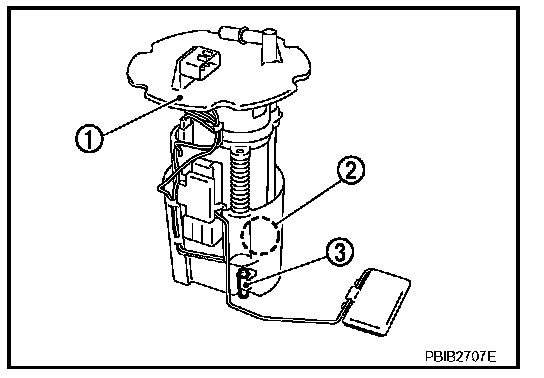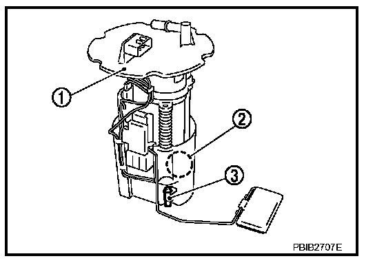 The fuel level sensor is mounted in the fuel level sensor unit. The sensor detects a fuel level in the fuel tank and transmits a signal to the "unified meter and A/C amp.". The "unified meter and A/C amp." sends the fuel level sensor signal to the ECM through CAN communication line.