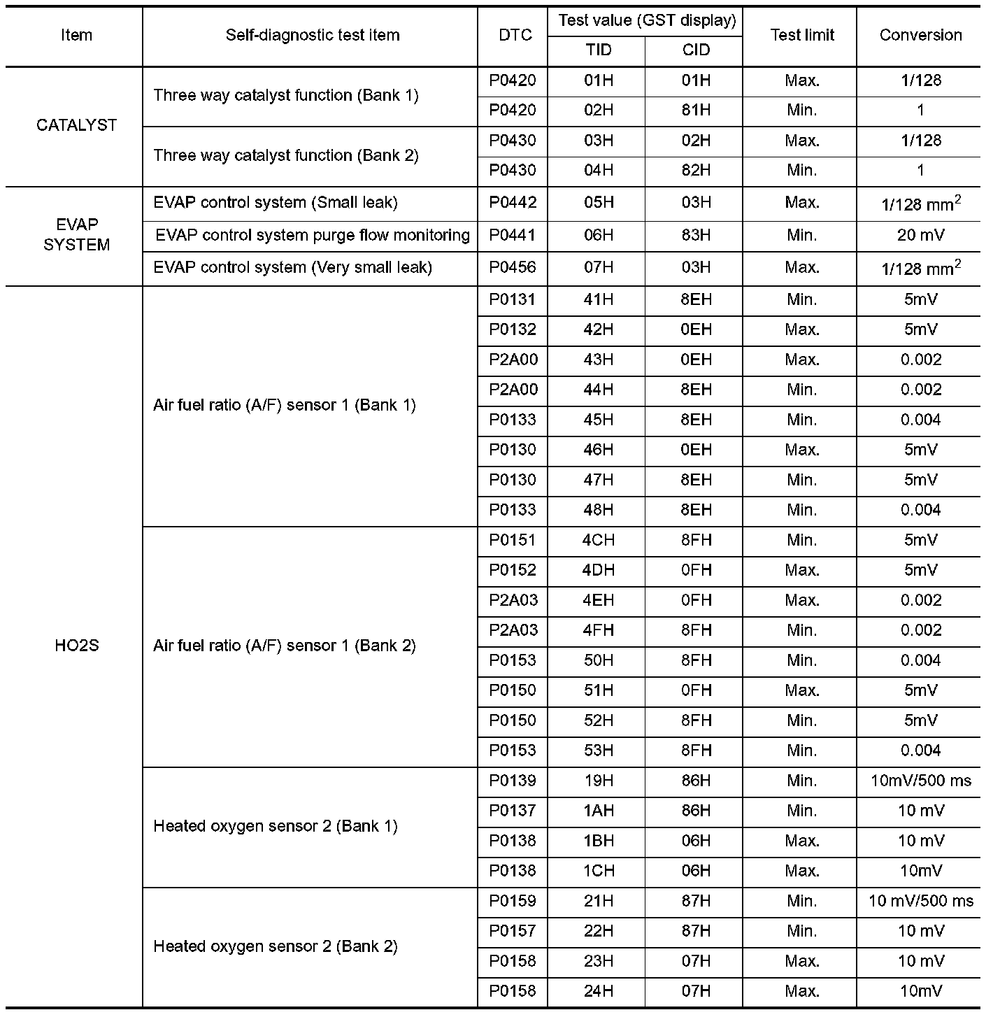 TEST VALUE AND TEST LIMIT (GST ONLY - NOT APPLICABLE TO CONSULT-II)