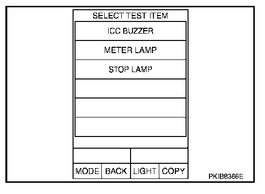 - "ACTIVE TEST" cannot be started while ICC system warning lamp illuminates.