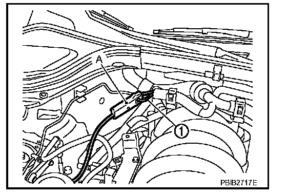 2. Connect ignition coil No. 1 (1) and spark plug No. 1 with suitable high-tension wire A as shown, and attach timing light clamp B to this wire.