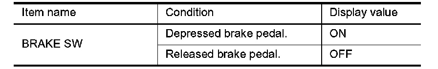 3. Read out ON/OFF switching action of the "BRAKE SW".