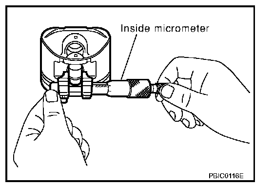 Measure the inner diameter of piston pin hole with inside micrometer.