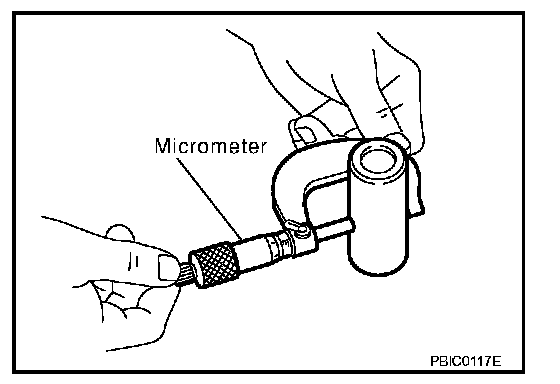 Measure the inner diameter of connecting rod bushing with inside micrometer.