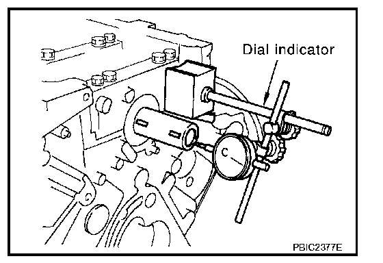 CRANKSHAFT END PLAY^ Measure the clearance between thrust bearings and crankshaft arm when crankshaft is moved fully forward or backward with dial indicator.