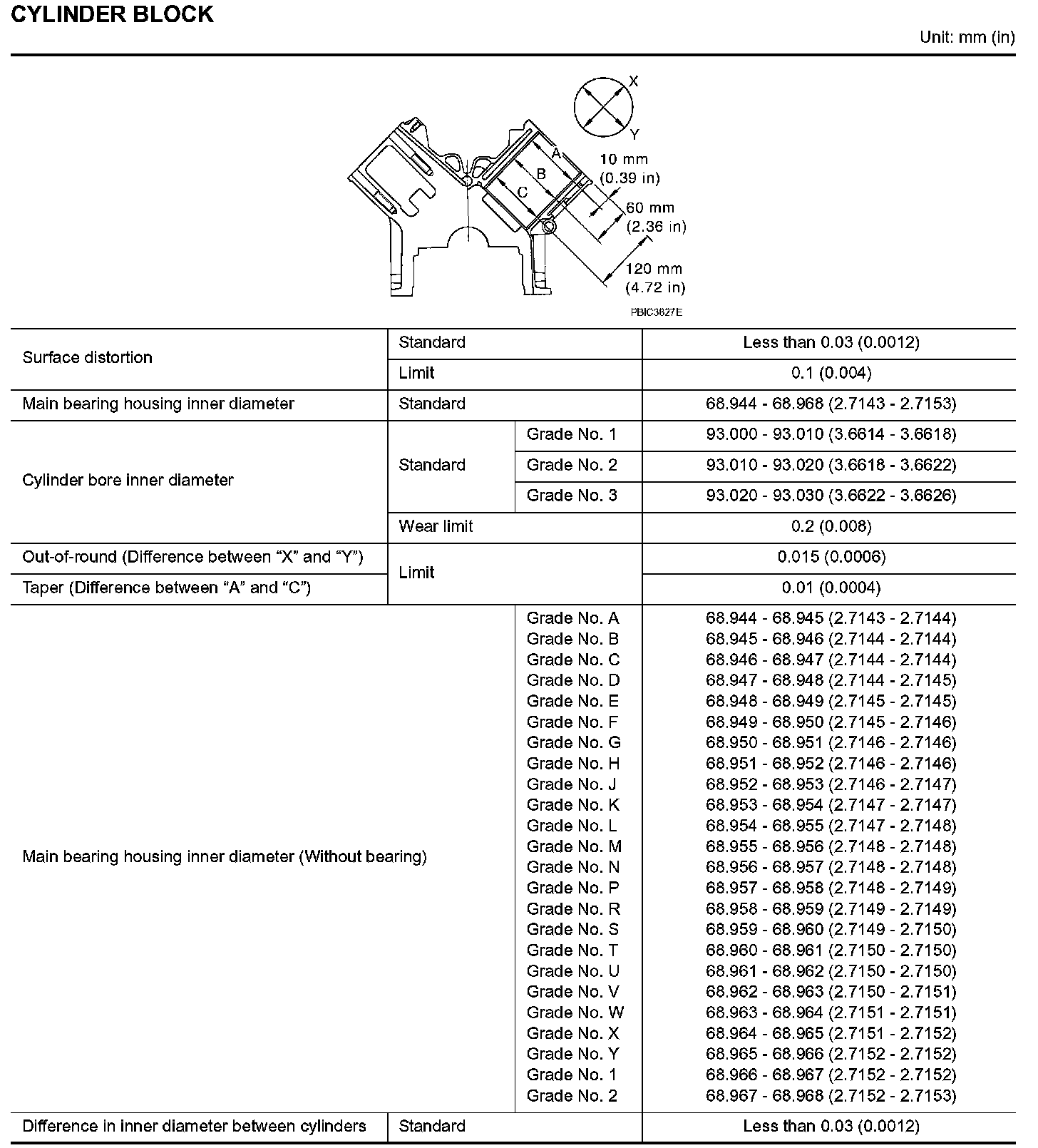 Standard: 92.980 - 93.010 mm (3.6606 - 3.6618 in)
