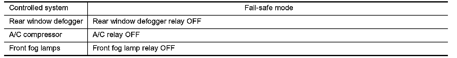 - Operation of control parts by IPDM E/R during fail-safe mode is as given: