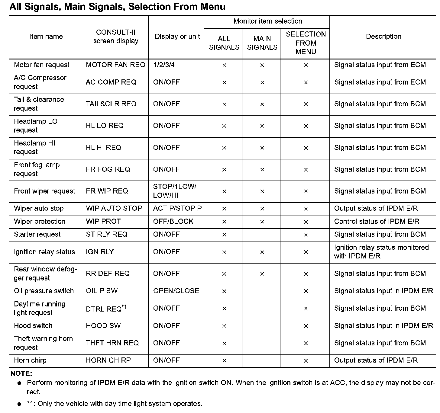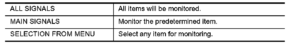 2. Touch "ALL SIGNALS", "MAIN SIGNALS" or "SELECTION FROM MENU" on the "DATA MONITOR" screen.