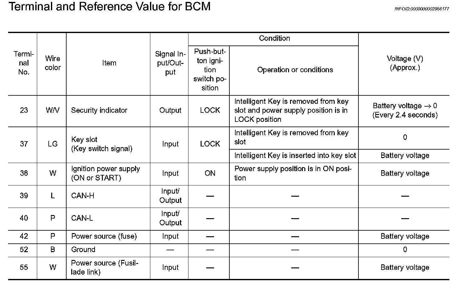 Terminal And Reference Value For BCM:
