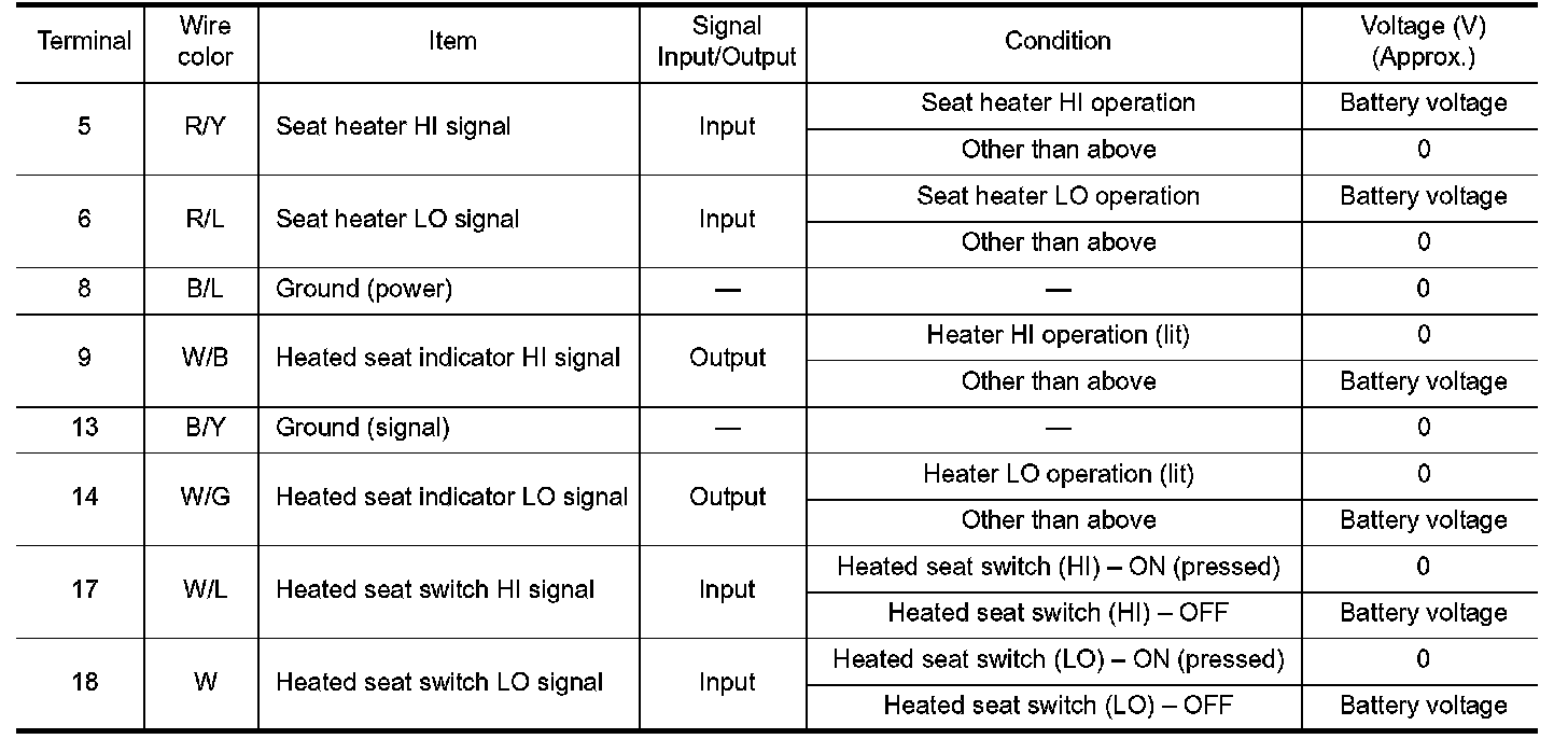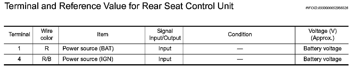 Terminal and Reference Value for Rear Seat Control Unit
