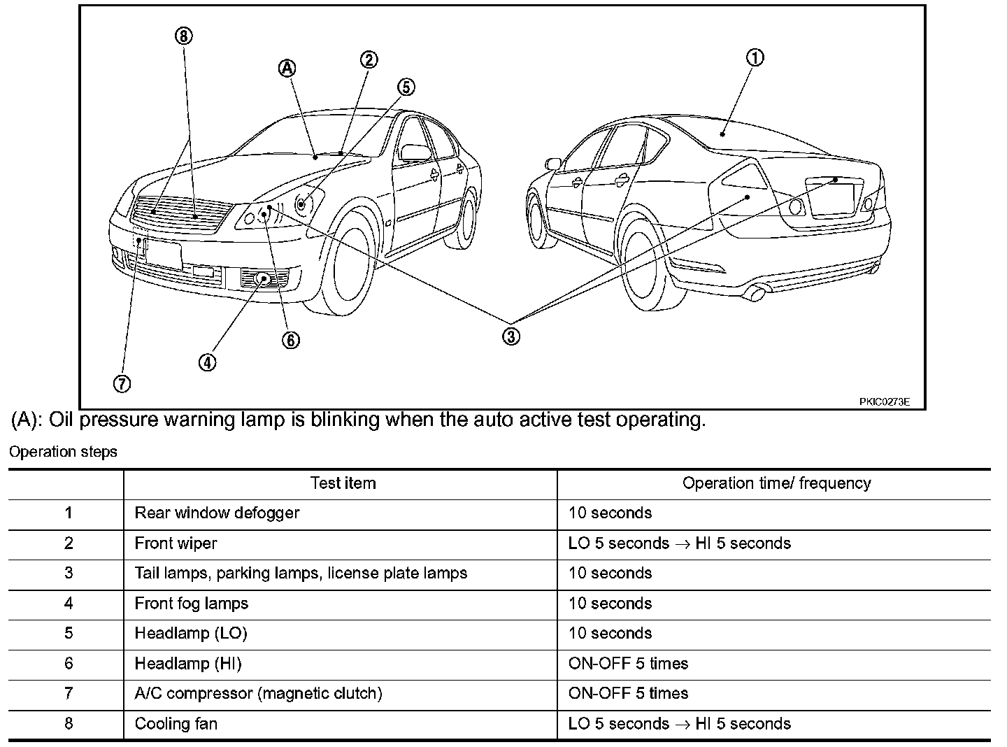 5. When auto active test mode is actuated, horn chirps once. Oil pressure warning lamp starts blinking.