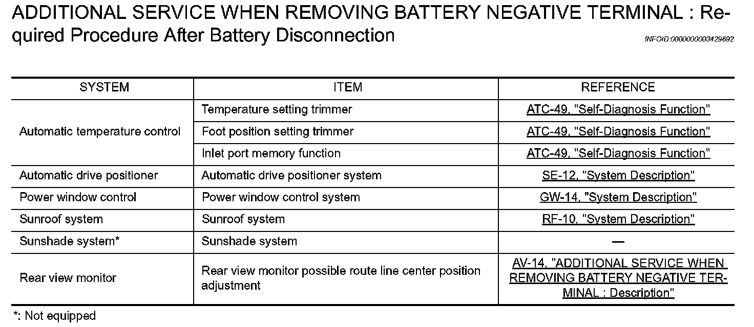 NEGATIVE TERMINAL : Required Procedure After Battery Disconnection