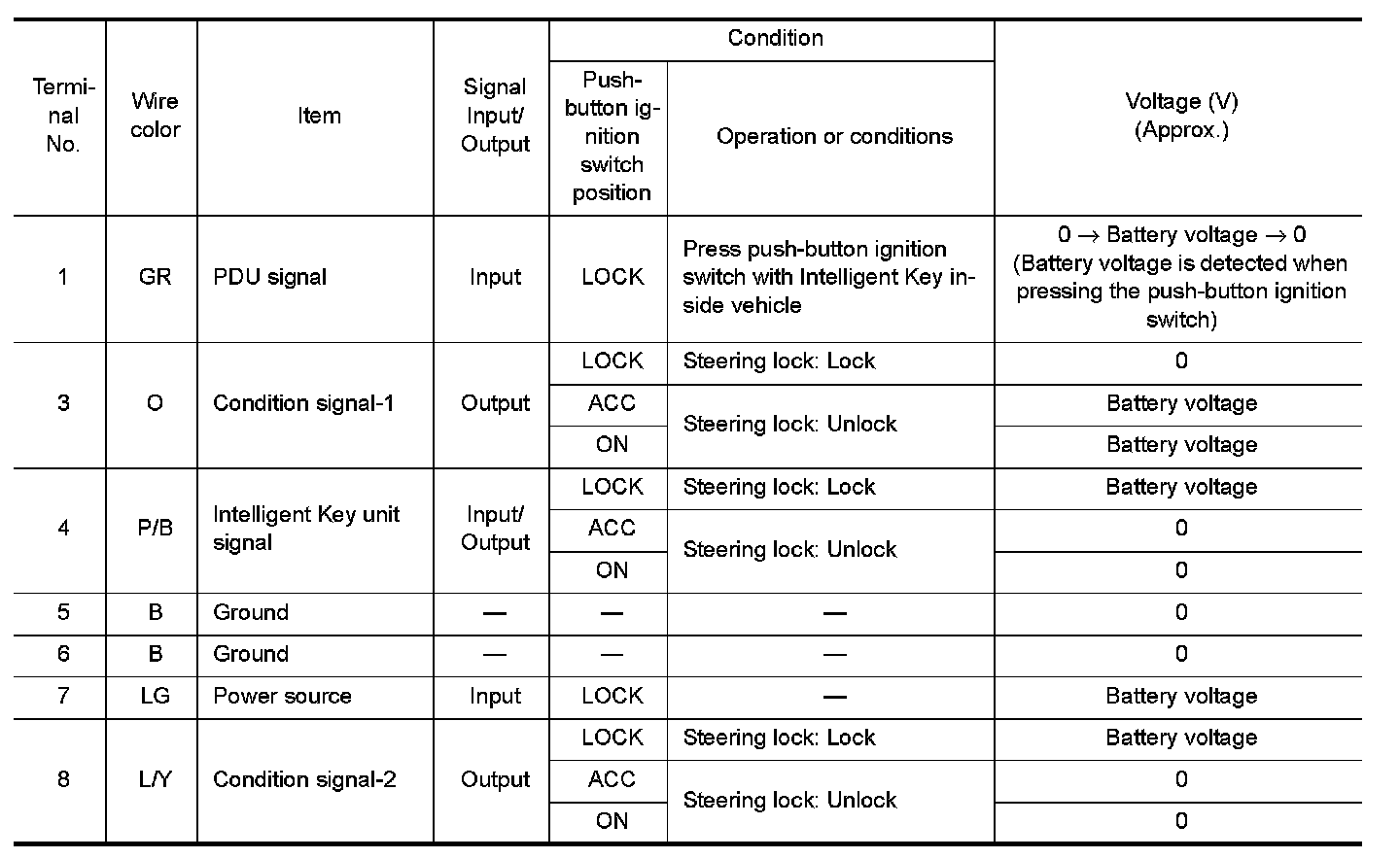 Terminal and Reference Value for Steering Lock Unit