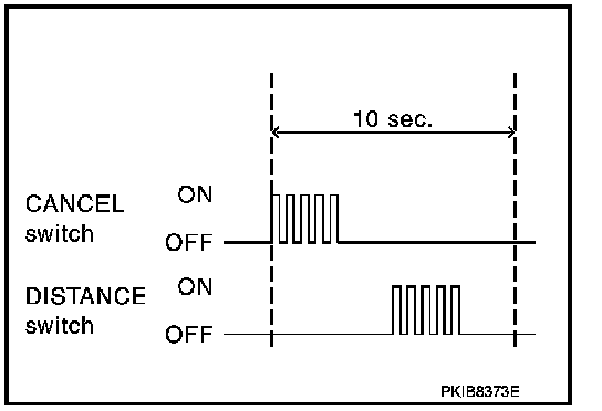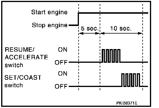 4. Wait 5 seconds after starting engine, then within 10 seconds, push up RESUME/ACCELERATE switch 5 times, and push down SET/COAST switch 5 times.