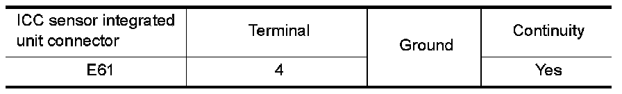 2. Check continuity between ICC sensor integrated unit harness connector and ground.