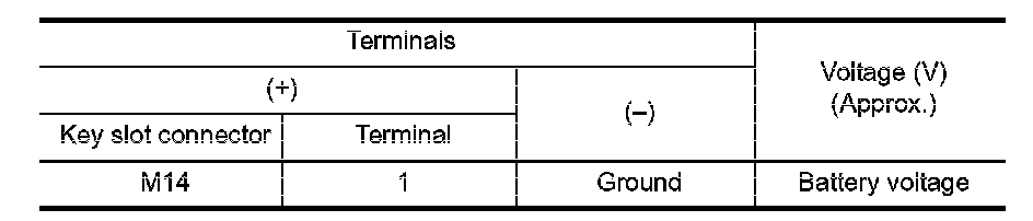 2. Check continuity between Intelligent Key unit connector and key slot connector.