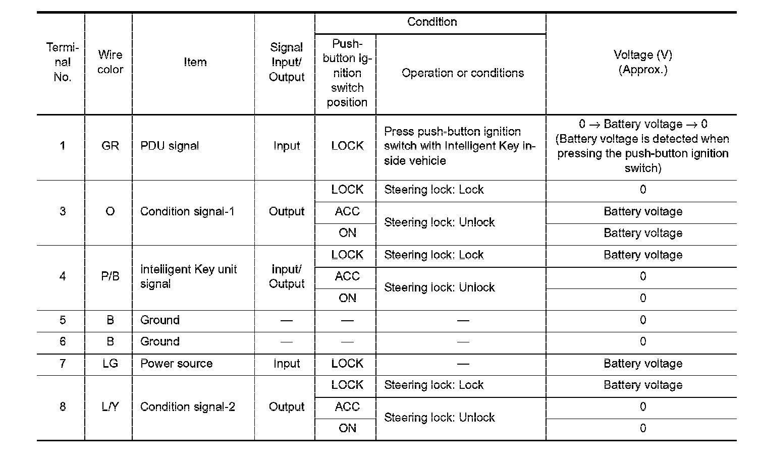 Terminal and Reference Value for Steering Lock Unit