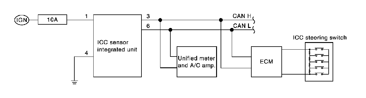 NG - Repair or replace harness between ECM and ICC steering switch.