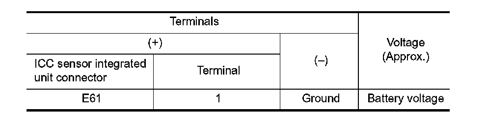 4. Check voltage between ICC sensor integrated unit harness connector and ground.