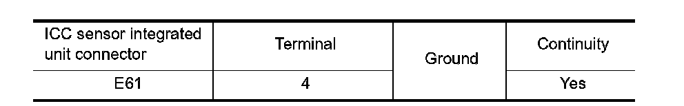 2. Check continuity between ICC sensor integrated unit harness connector and ground.