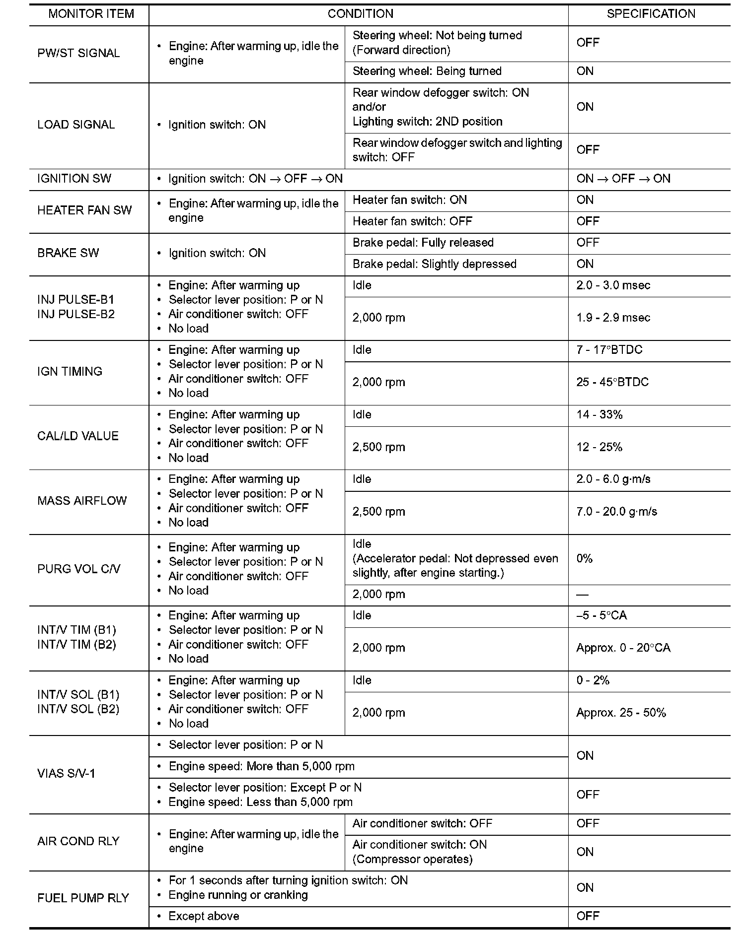i. e. Adjust ignition timing with a timing light before monitoring IGN TIMING, because the monitor may show the specification data in spite of the ignition timing not being adjusted to the specification data. This IGN TIMING monitors the data calculated by the ECM according to the signals input from the camshaft position sensor and other ignition timing related sensors.