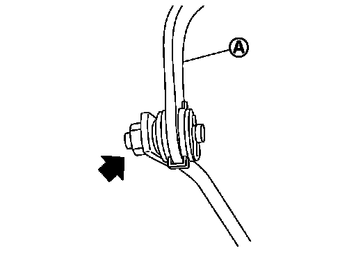 3. While pressing lower lever (A) toward rear of vehicle (in "P" position direction), tighten nut to specified torque. Exploded View.