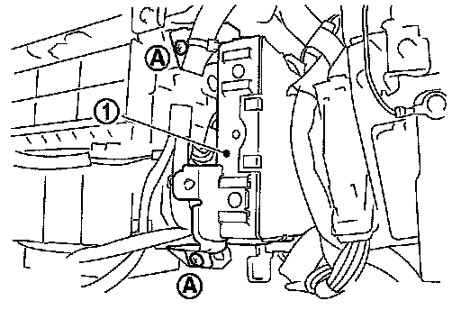 2. Remove screws (A), and pull out the BCM (1).