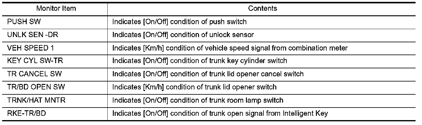 TRUNK : CONSULT-III Function (BCM - TRUNK)